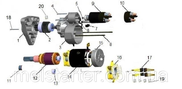 - 12) Якір стартера (Купити) (Купити Тут-1) (Купити Тут-2) (Купити Тут-3)